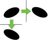 看起来似乎两种翻转效果是一样的,都是旋转了一定的角度,其实不是。翻转和旋转是两个截然不同的概念。如下右图,仔细观察一下椭圆边缘红色绿色蓝色三个点在翻转之后的位置,就会明白这并不是旋转所能够做到的。翻转又称为镜像。把上图左上角的椭圆画在纸上,然后拿一面镜子,分别放在图中两条细线的位置,从镜子中就看到的情景就是镜像。大家可以自己动手做做,看看那镜像是不是上图的效果。