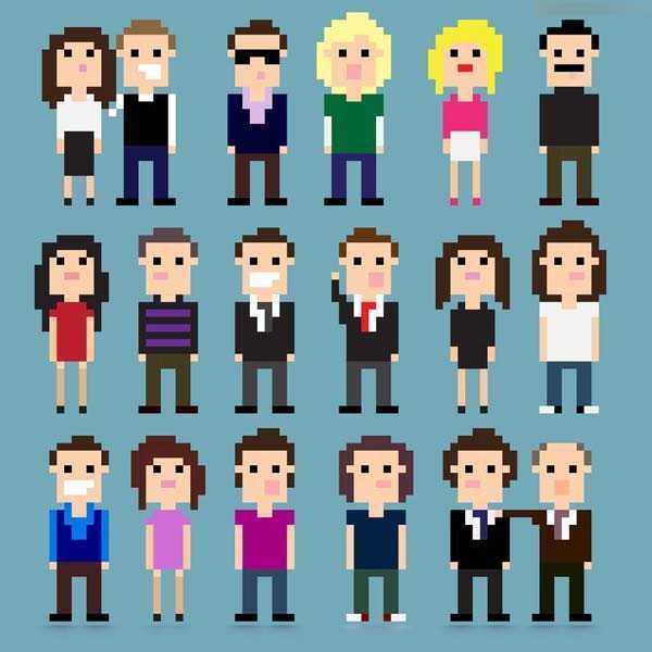 现在,所有的像素人物和衣服的信息完成后,我们添加的触摸阴影对应于不同体积的像素。