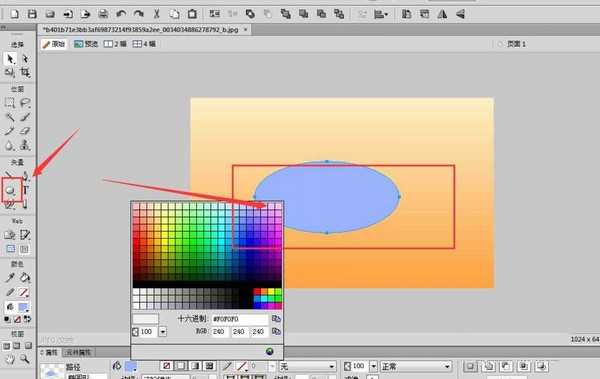 2、然后绘制一个椭圆形状,颜色随意,如图所示