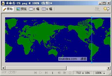 3、进入Fireworks,新建文件,粘贴。粘贴后利用裁剪工具将世界地图部分裁剪下来,裁剪时一定要放大比例进行裁剪,精确一些。