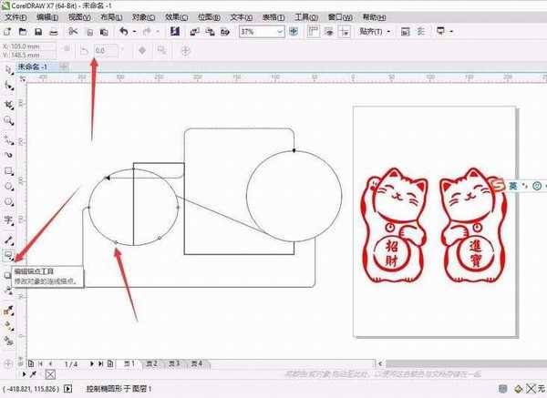 6、编辑锚点方向,双击可以添加锚点,属性栏可以调锚点方向和删除锚点