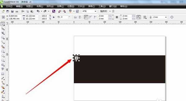 1、在新建的页面上,使用矩形工具绘制一个长长的矩形,并且左击调色板的黑色,为矩形填充上黑色