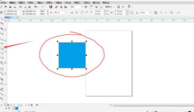 1、第一步:新建一个工作区,用矩形工具绘制一个矩形并且填充颜色。填充颜色时只用单击下方的颜色块就行了。