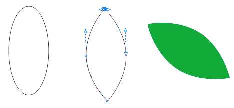 绘制椭圆形,转曲使用"形状工具"将上下手柄向中间拖动,形成叶子形状,去除描边填充绿色。