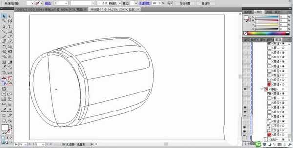 2、接着,我们绘制出另外一个右侧的站立的易拉罐的基本轮廓。