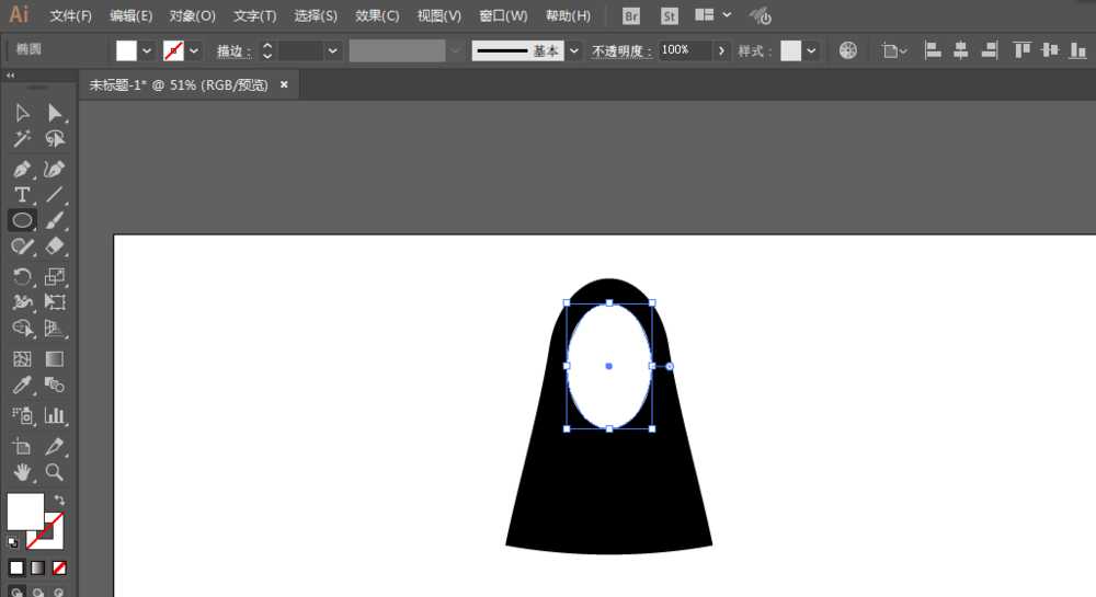6、用椭圆工具绘制椭圆形和圆形,圆形需要两个,然后减去顶层,留着小的圆形。