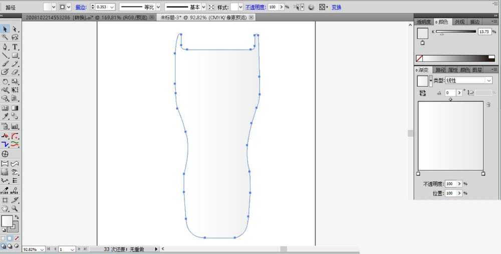4、选择剃须刀的正面路径,我们用灰白色的线性渐变填充它,从而让灰白机身呈现出来。