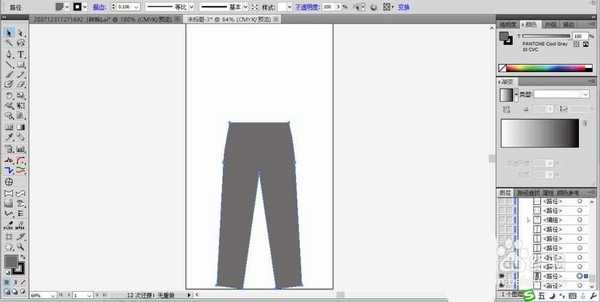 1、先使用钢笔工具画出长裤的基本轮廓并填充品牌专用的灰黑色。
