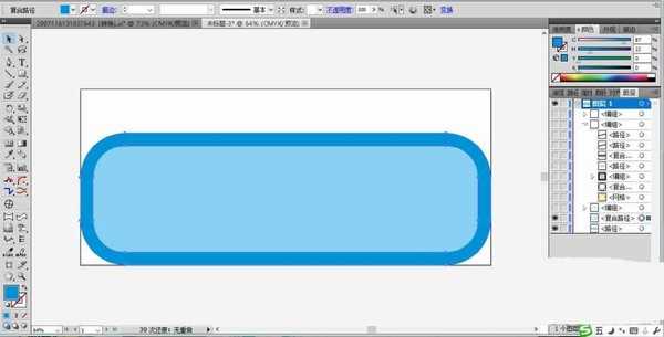 2、复制这个圆角矩形并放大到108%左右,我们让其与原来的矩形组合成为一个复合路径并填充深蓝色。