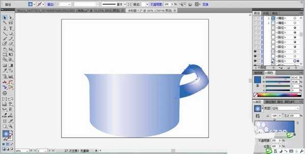 1、使用钢笔工具绘制出高压锅的主体,使用七个锚点勾勒出高压锅的半圆柱形状并填充蓝色的渐变。