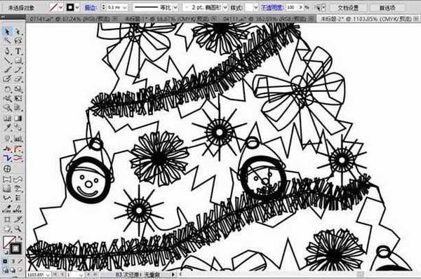 2、我们再继续画出下方的小圣诞树的路径,在圣诞树上面有着更多的星星、雪花、蝴蝶结等等,我们先绘制出单个的元素再一一绘制出来。