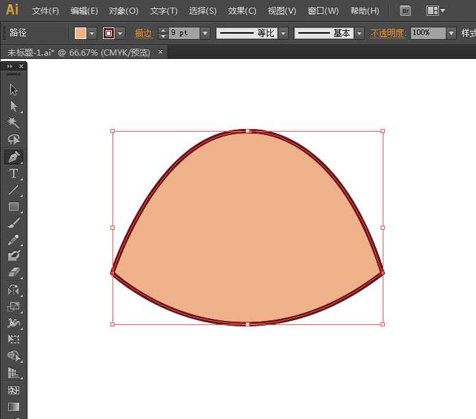 1、打开AI新建画板,使用工具栏中的钢笔工具勾画出狐狸脸部轮廓。