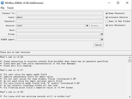 2、在Winbox的连接窗口中,输入路由器的IP地址,然后输入管理员账户的用户名和密码,点击“连接”按钮。